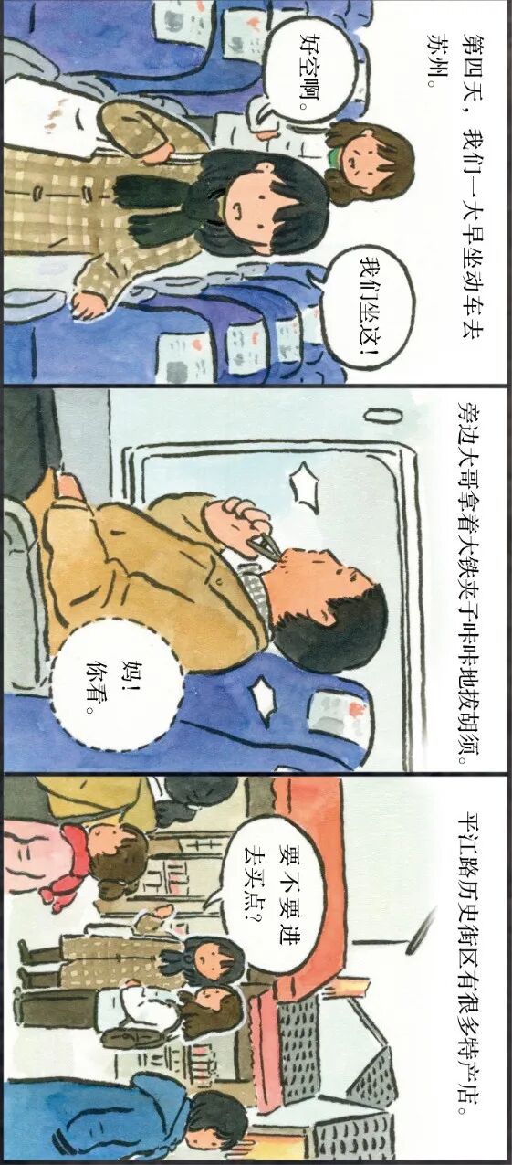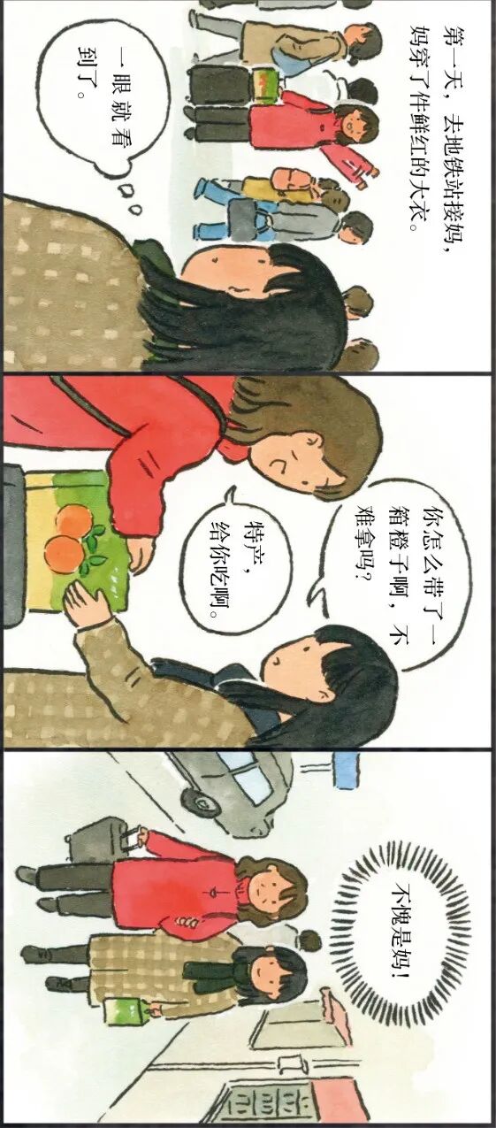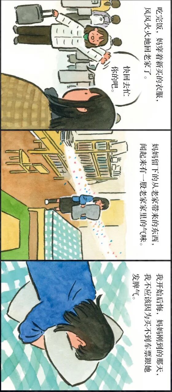 插画师李宁静就用画笔记录了一次妈妈从老家来上海看她的故事。大老远来一趟,妈妈拎着大包小包,又雀跃又不安。这种纠结,其实子女也一样。