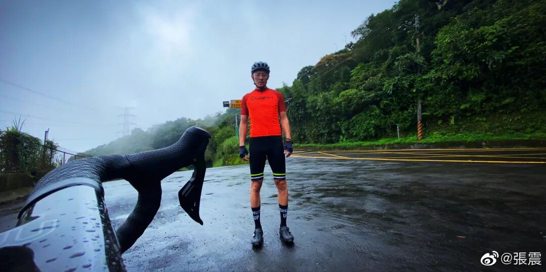 张震在下雨天骑车 图/@张震