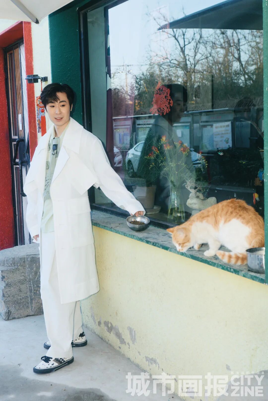北京郊区的一处民宿,金博洋正在进行最后一组拍摄,一只流浪猫的意外加入,让他展现出开心的神情。