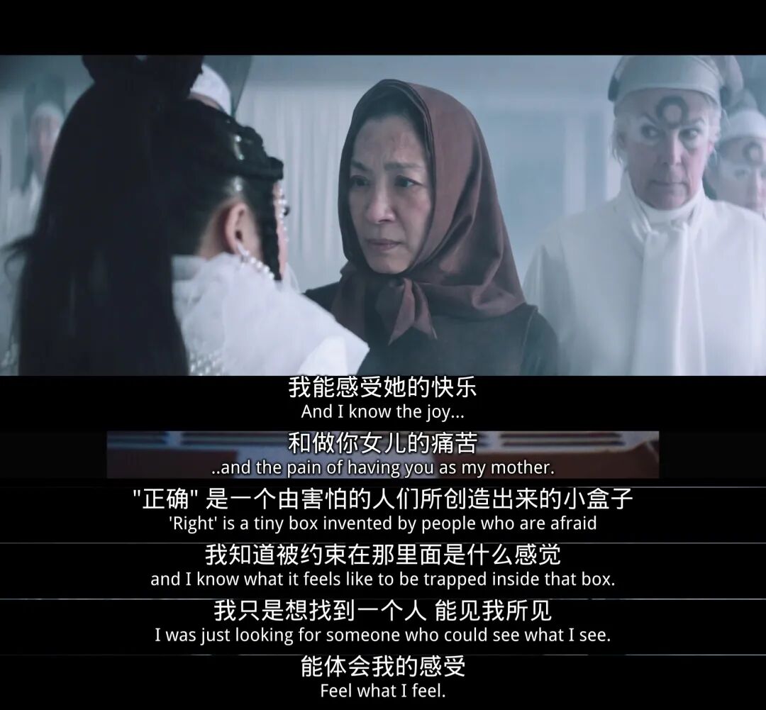 在不适合生物生存的宇宙里,母女分别以石头形态存在。电影此时没有念白,以字幕呈现这场无声的对话,这一幕令很多网友动容。