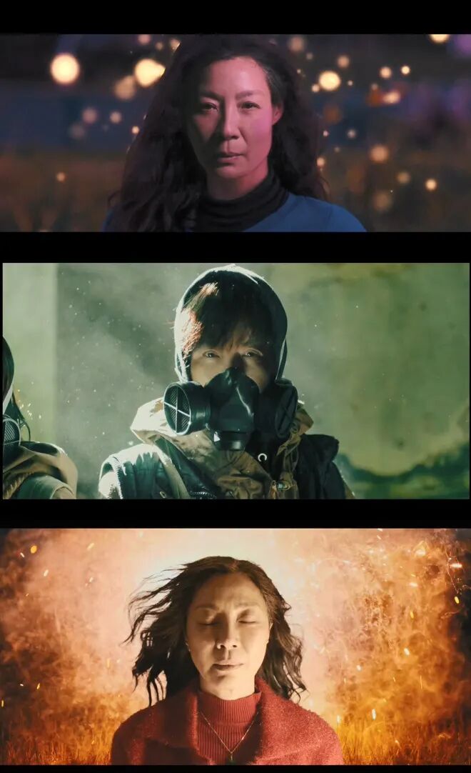 在“宇宙跳跃”中,秀莲经历了多个宇宙分支,电影用快速画面的闪现来表现。