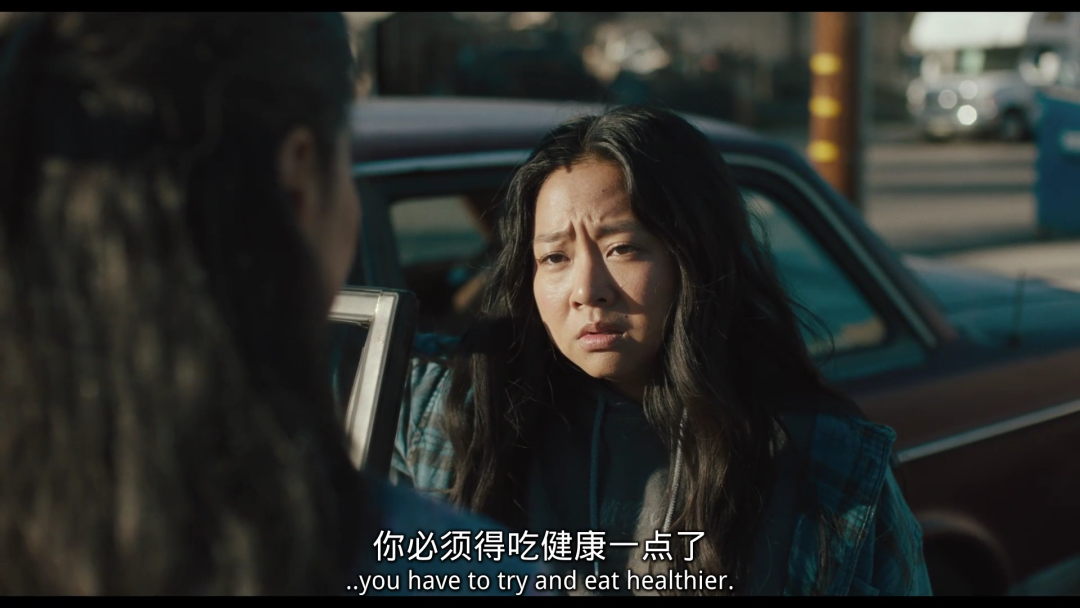 两人拥抱而哭,女儿说,“这也太尴尬了”,这台词可能对应着华人家庭的情感表达习惯,少有像拥抱直接表达爱的行为。