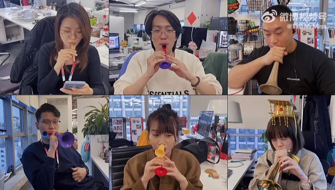 今年春节前夕,她觉得一个人吹卡祖笛太无聊了,就带了造型各异的卡祖笛回公司带着同事一起吹《好运来》