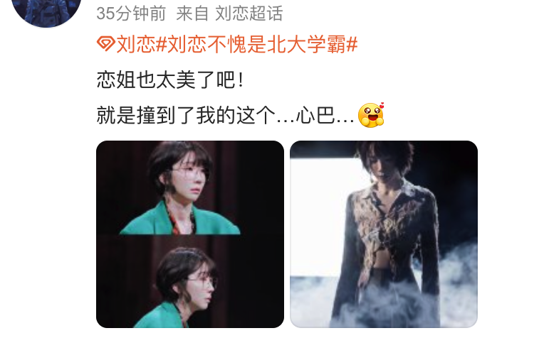 在30个姐姐里,贴着“北大学霸”、“4A就职”、“金曲奖得主”等标签的刘恋凭借她的智性魅力走出了“用头脑吸粉”的路子。