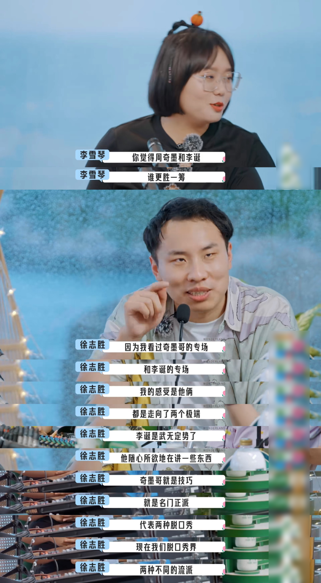 △《朋友请听好2》第二题,由雪琴提问:周奇墨和李诞,谁的脱口秀更胜一筹?志胜没有正面回答问题,而是从他俩的专场观后感入手,曲线救国: