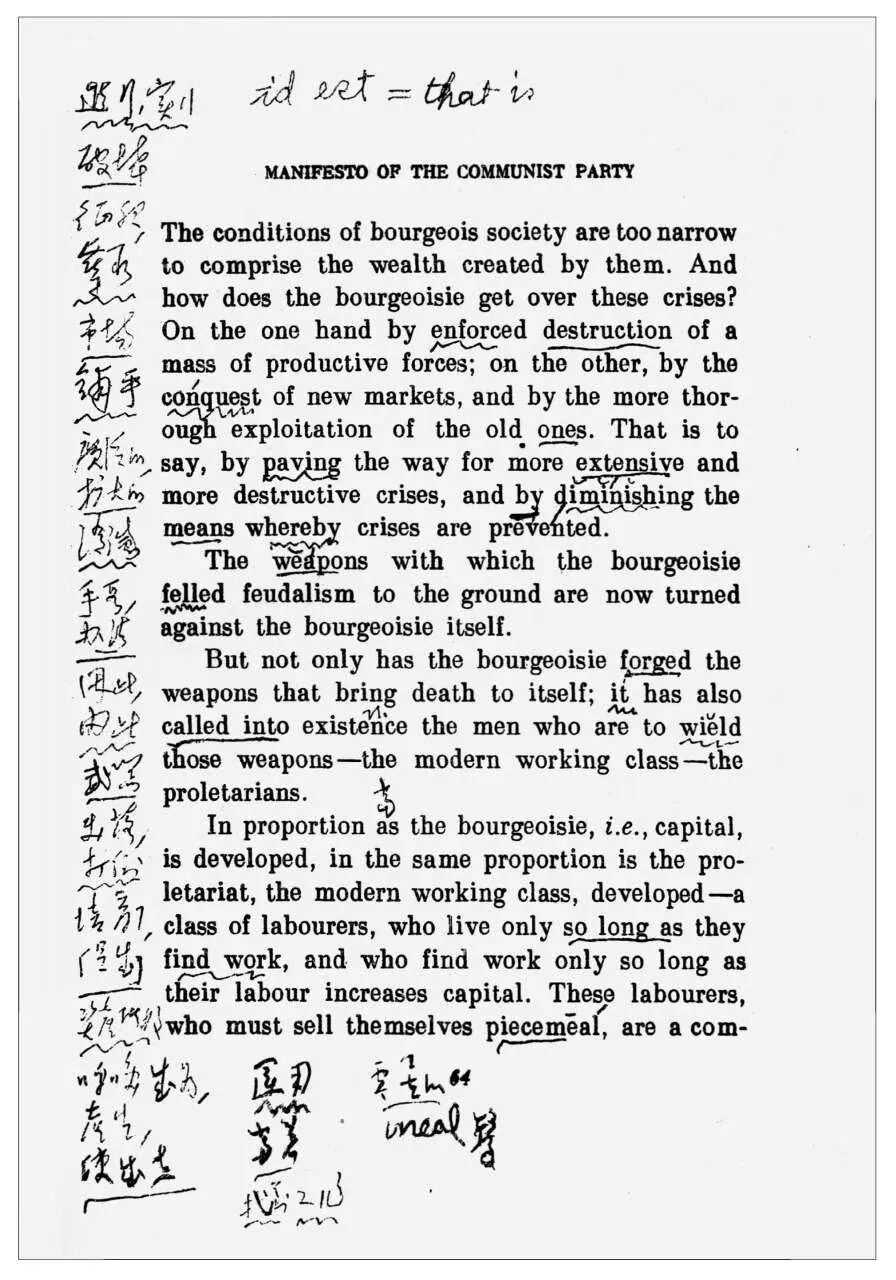 毛泽东读英文版《共产党宣言》的批注