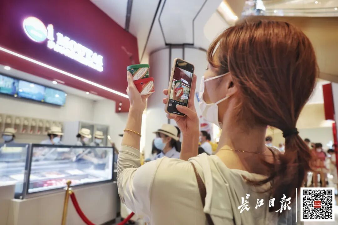 7月9日上午,“新晋网红”茅台冰淇淋店在武汉恒隆广场负一楼开业。上午10时不到,已有不少市民排队尝鲜。这也是茅台冰淇淋“登陆”武汉的首店。