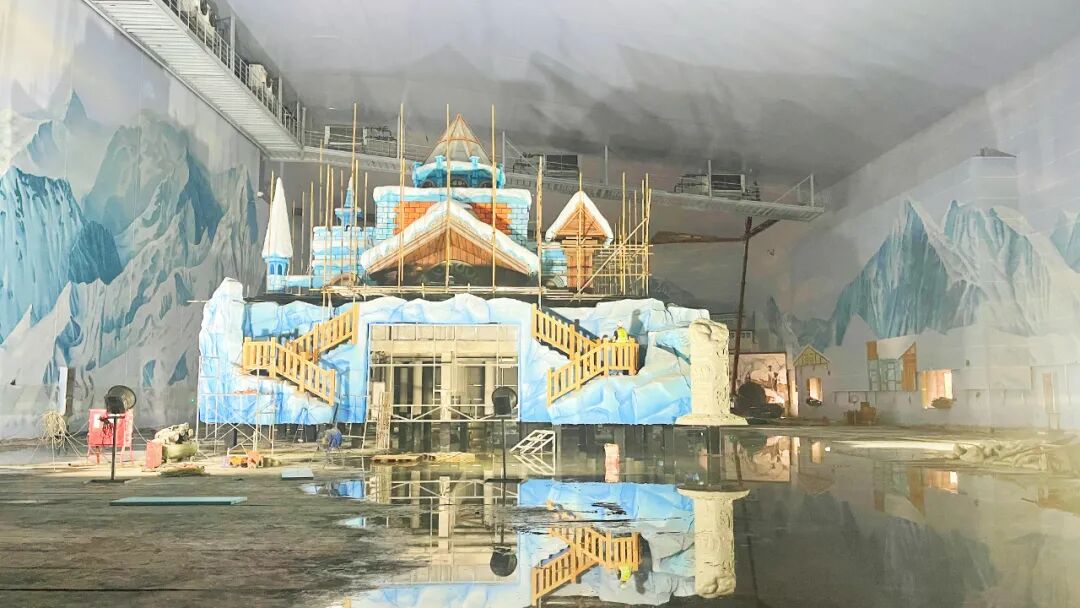 娱雪区分为多个区域,分别对应不同的休闲冰雪项目,如儿童滑道、雪地坦克等;俄罗斯风格的冰场,正中间巨大的“狼头”造型,周边配以城堡、小屋,风格独特,目前正在抓紧施工中。