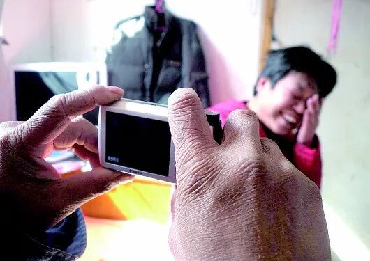 张书成用廉价数码相机记录工友生活,也给妻子拍照,把妻子拍乐了(请注意这双劳动的手)