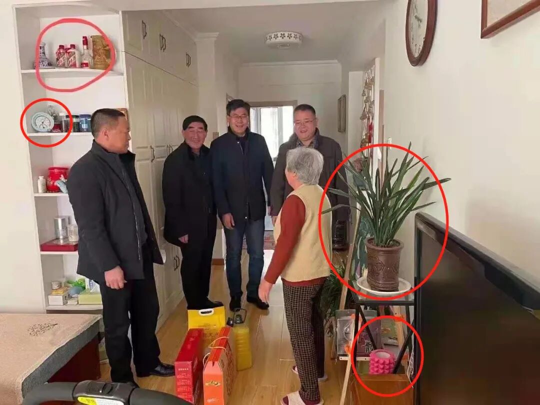 每到年底,“看望困难群众”是一个各地固定的“节目”。可惜,每年都有地方领导在这个点上“翻车”,可以说是成了一个“事故高发地带”了。今年出事的,是山东青岛城阳区。棘洪滩街道办事处官方公众号发布党工委、办事处领导班子成员、包社区干部看望低保户、分散供养特困户、困难户等,随后像往常像其他地方一样发布文章宣传。但是。这张图片的角落引起大家注意:左上角摆着茅台、五粮液等酒瓶。