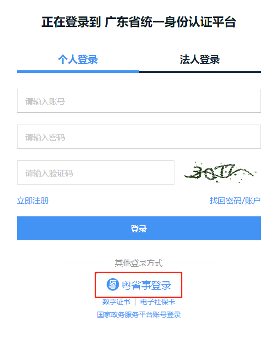 注意:如果打开的页面是账号密码登录,点击下面的“粤省事登录”即可更换成二维码。