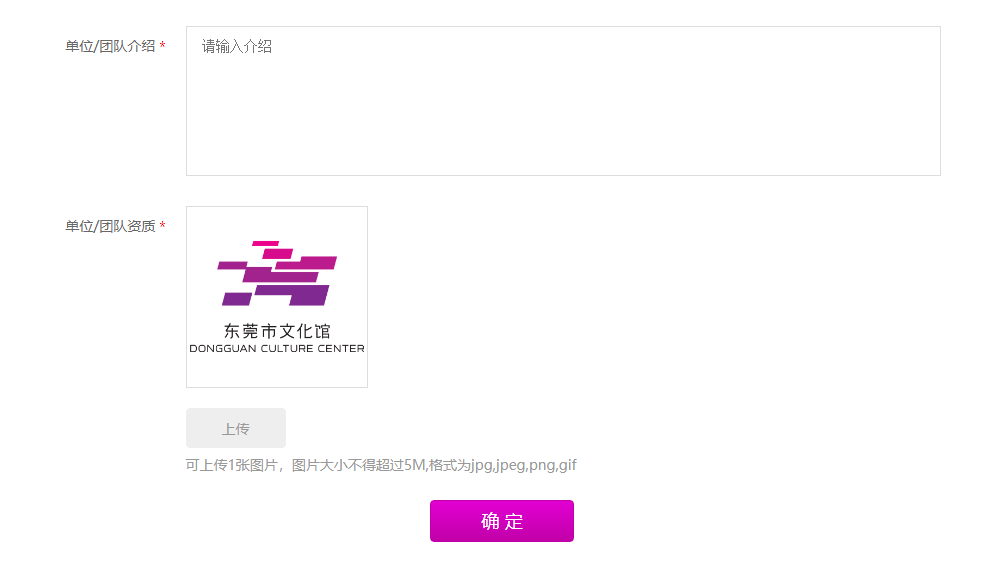 ⑧上传资质:单位或企业提供营业执照,文艺团队提供社会团体法人登记证书(图片要求:需要提供清晰的电子扫描版图片,图片大小不得超过5M,格式为jpg,jpeg,png,gif)。