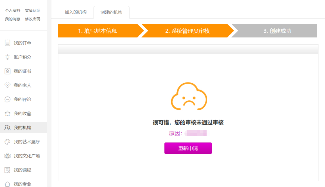 注意:如申请未通过,该申请会被退回,请登录文化莞家PC端平台(www.dgswhg.com)修改信息并重新提交。
