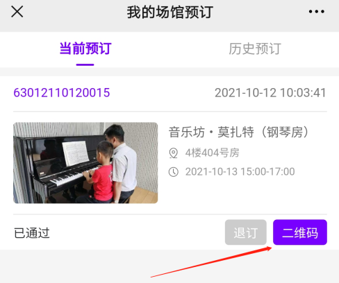 1、选择您想预订的钢琴房,点击预订按钮;