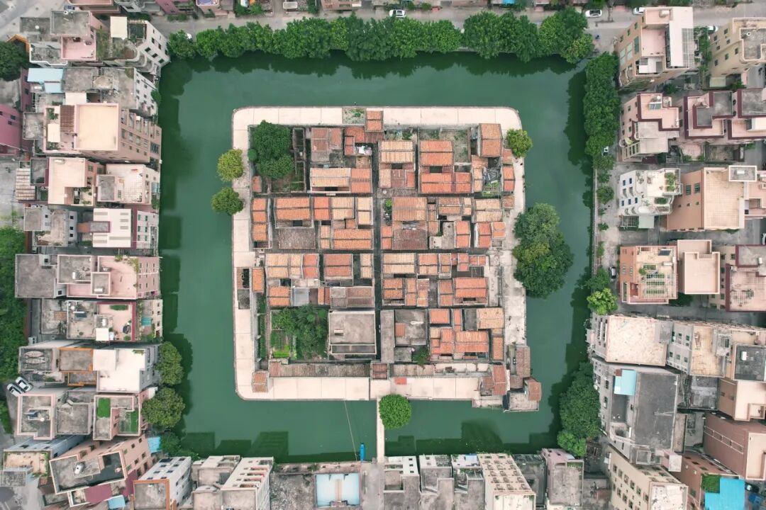 逆水流龟村堡由明代进士郑瑜所建,四面环水,外形似龟,又称白沙水围村。