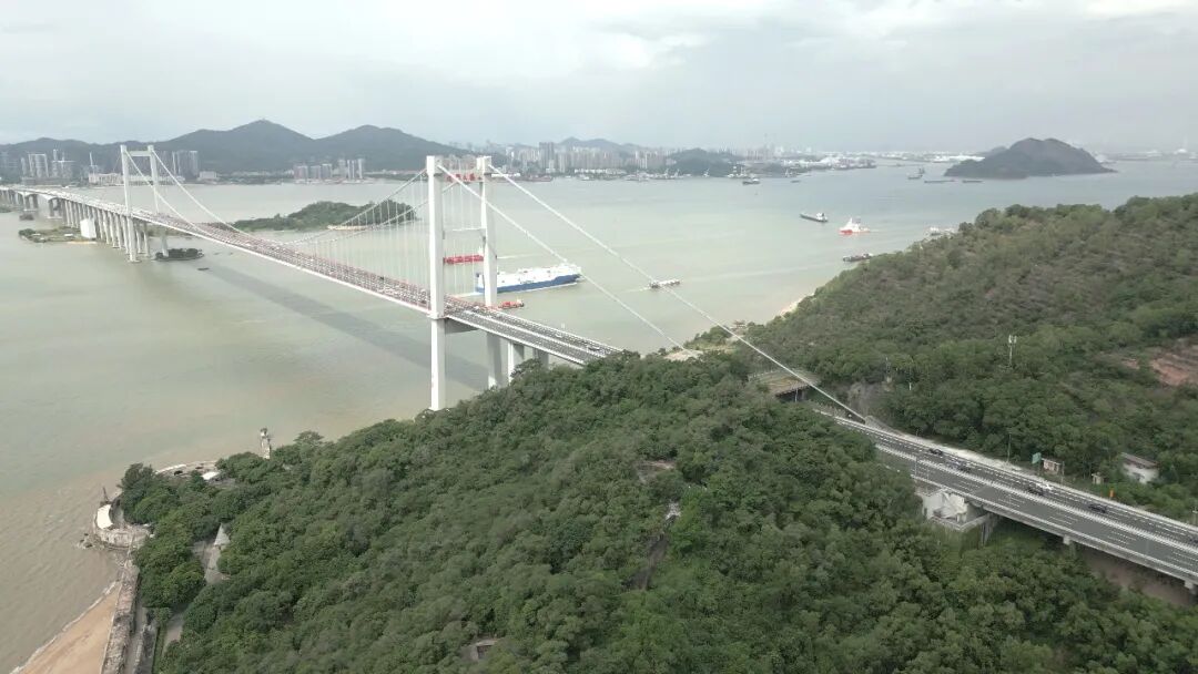 遍身沧桑的炮台被葱郁的树木环抱,上方不远处,就是横跨珠江口的虎门大桥。