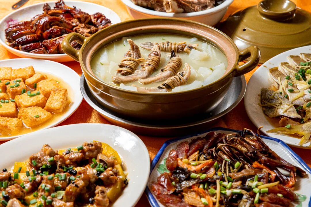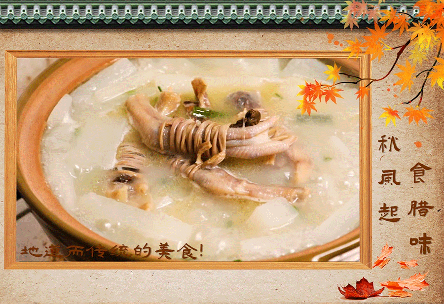 秋风起,又是一年腊味时,讲到洪梅新九大簋,必定不能少了这道「鸭脚包」。在广东地区,腊味品种多样,而对于东莞人来说,腊味更是传承许久的美食文化。别小看这道风味十足的特色菜,从食材搭配到制作工艺都下足功夫。