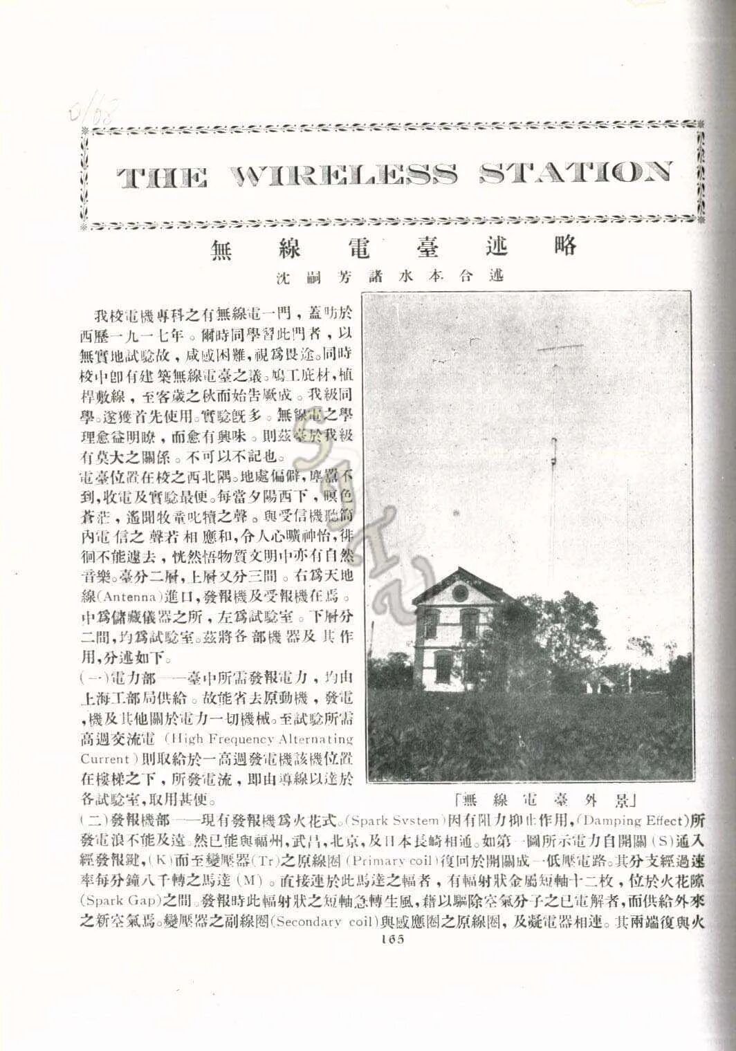 学生中首先使用无线电台的是1921届电机科学生。他们由美籍教授谢尔顿、汤生、狄克、张廷金等名师教诲指点,在这间小楼里做了很多实验。而“无线电之学理愈益明了,而愈有兴味”,学生们十有八九乐此不疲。沈嗣芳为同学们公认的“古文学家”,喜欢吟风弄月,这时也酷好无线电,做实验时极其投入。毕业前,他与同学合作写就一篇“无线电台述略”,描述了其实验期间陶醉在“受信机听筒内电信之声”的感受,并详述了无线电实验原理,此文登在1921届同学毕业纪念刊上,现在读来,仍颇有趣味。1926届电机系陆定一也曾在此做过无线电试验。在解放战争期间,有同学还冒着风险,在无线电台接收到来自延安的红色电波。