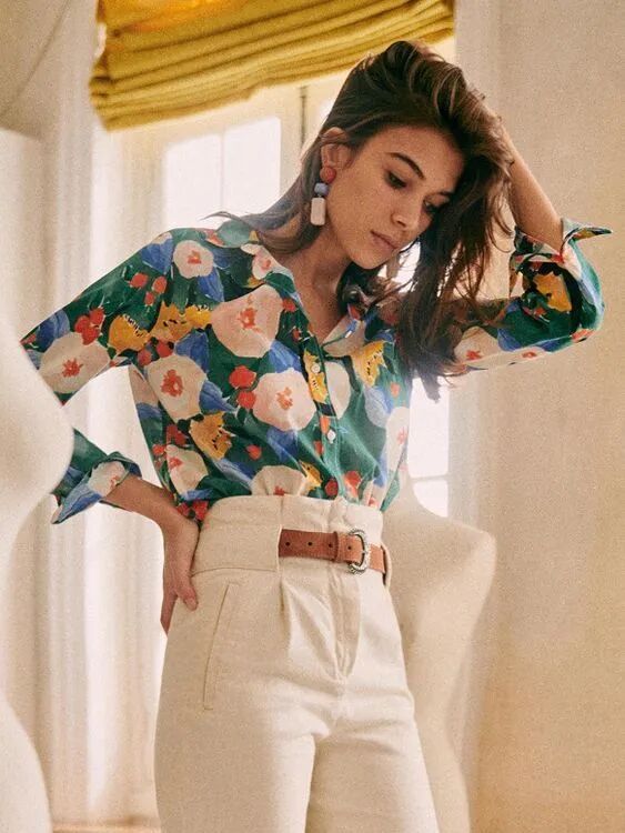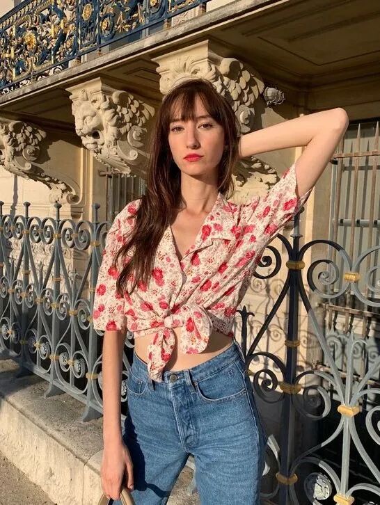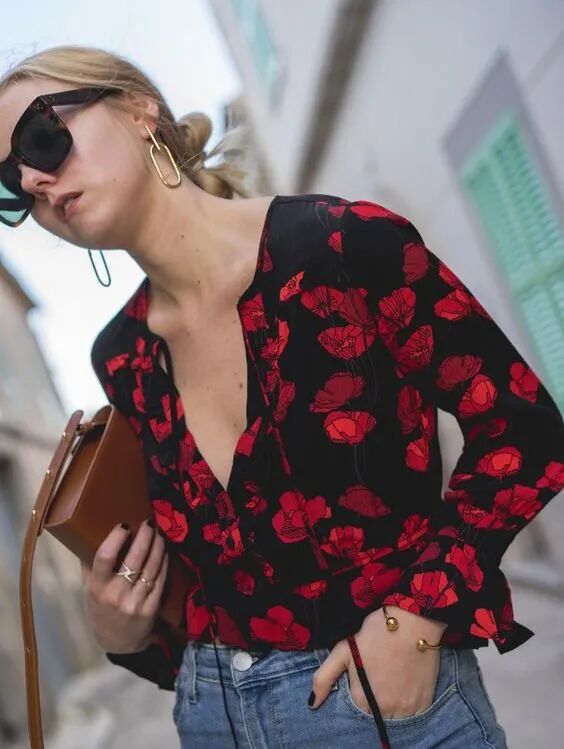 花衬衫和牛仔裤之间要有松有紧