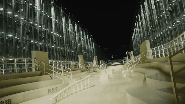 这次秀场由数个连绵起伏的滑行轨道构成。