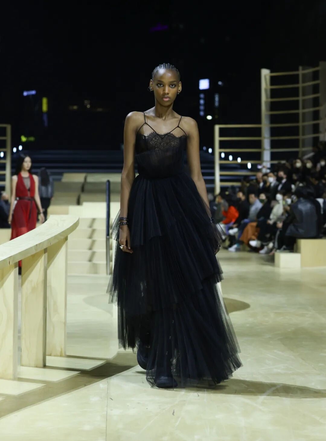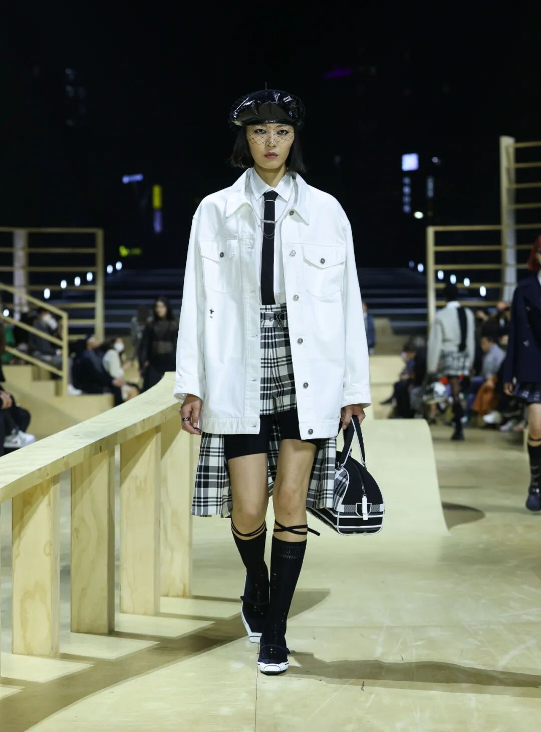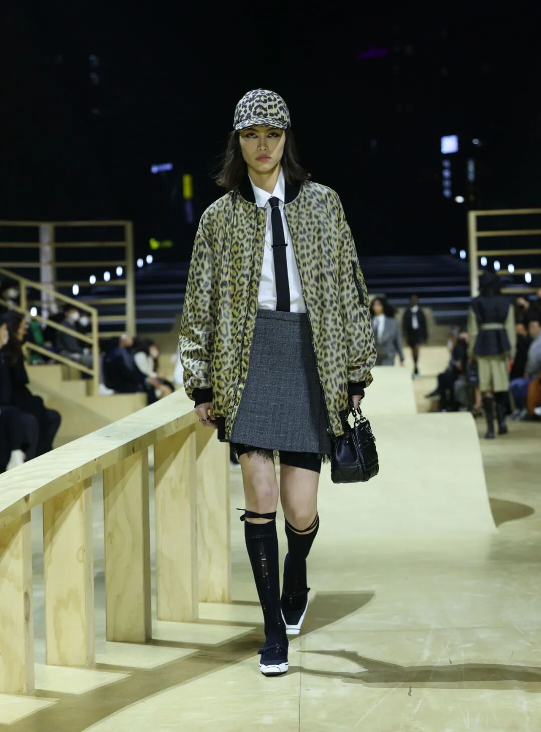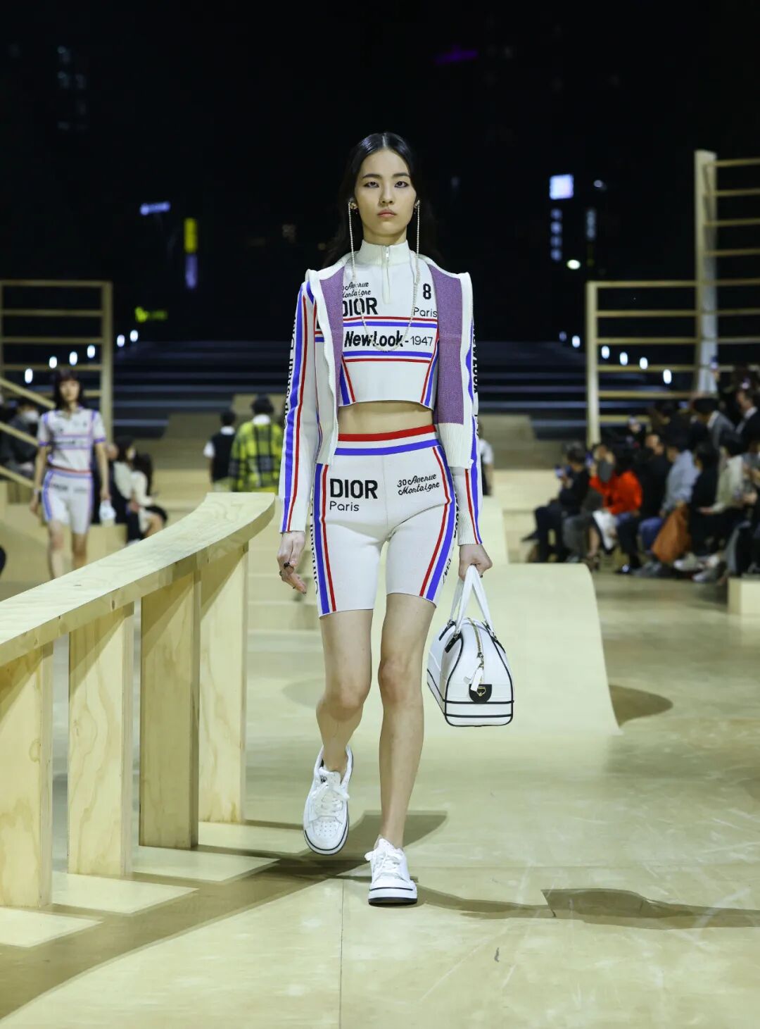 在大秀正式开始前,拥有青年潮流特质的滑板爱好者从轨道上纵身一跃,象征着Dior与当下Z世代的紧密联结;而不断滑行的滑板女孩,视秀场为首尔街头,带着些许叛逆和不羁进入你的视野,为Dior赋予这变革性的一刻:这一个老牌时装屋已经紧紧地拽住了年轻一代的流量密码,在焕新Dior档案中过去的浪漫与美好的同时,为新世界女性注入全新的血液。