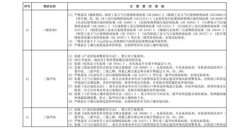 《意见》中提出2021年将重点管控二噁英类*、二氯甲烷、三氯甲烷、三氯乙烯、四氯乙烯、甲醛、乙醛七种大气污染物,以下为详情: