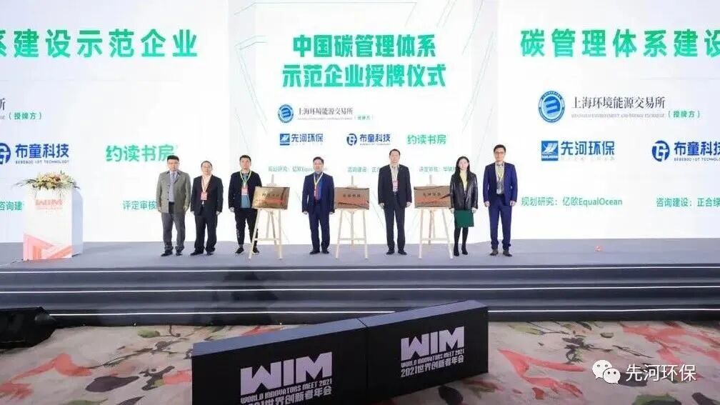12月21号,中国碳管理体系试点单位授牌仪式在2021世界创新者年会(WIM2021)论坛上隆重举行。先河环保成功入选首批试点单位(仅5家),并成为生态环境领域第一家碳管理体系示范企业。