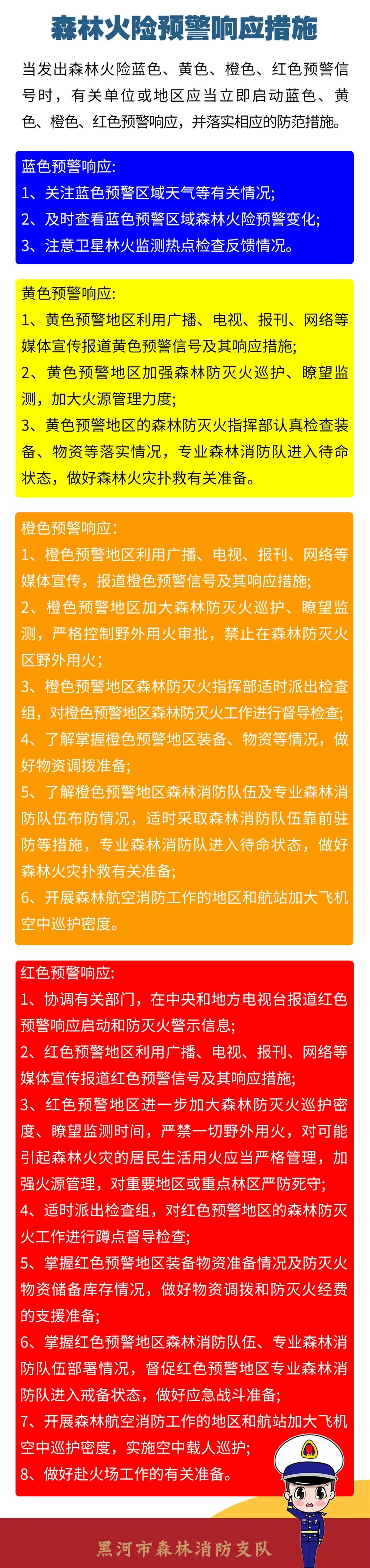湖南省森林防灭火指挥部办公室4月4日16时发布未来24小时森林火险黄色预警:湘西州、张家界、常德森林火险气象等级较高(3级),请按森林火灾应急预案规定,启动黄色预警响应措施:加强防火值班调度,加强野外火源管理,加强森林防火巡护和瞭望监测,加强火险隐患排查,落实防火装备物资,县乡两级森林消防队伍进入待命状态。省森防办温馨提示:严格控制火源,消除火险隐患。