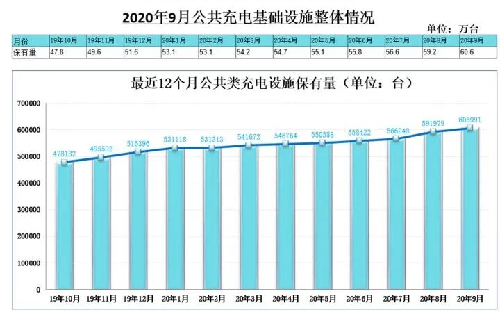 根据中国充电联盟发布的数据显示,截至2020年9月,联盟内成员单位总计上报中国充电桩目前总保有量为141.8万台,其中公共类充电桩60.6万台。