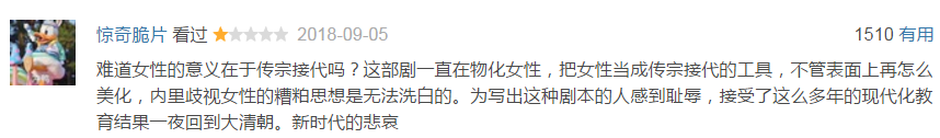 另外,剧中透露出浓浓的“重男轻女”思想,也备受网友诟病。