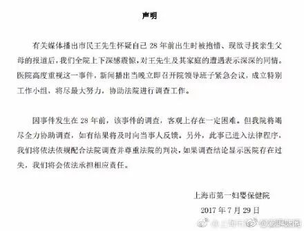 在社会各界的关注下,上海市第一妇婴保健院也迅速给出了回应
