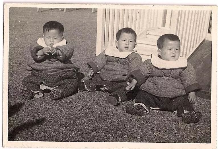 1951年,中国福利会托儿所三胞胎咸慕真、咸慕和、羡慕群的合影(1950年出生)。