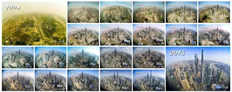 一年一张以东方明珠为原点的浦东陆家嘴俯瞰图