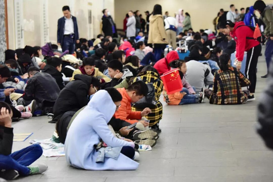 升旗仪式前,在长安街地下通道里等待进入广场的人们。