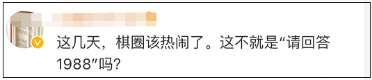 有位棋迷表示,空姐和围棋高手,难道是现实版的《请回答1988》?(前几年非常火的一部豆瓣高分韩剧《请回答1988》中,女主角就是空姐,而男主角是以韩国围棋天王李昌镐为原型的天才棋手。)