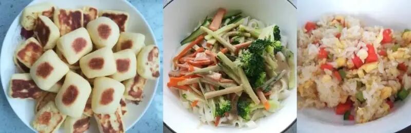 我本身不太会做饭,但也尽自己所能变着花样改善口味,蛋炒饭、炒饼丝、打卤面、饺子、冷面、肉包子、红烧肉、土豆炖牛腩、炒虾仁、冒菜等,129顿饭各种尝试……不一定可口,但保证安全可靠。