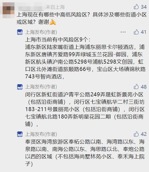 上海现在有哪些中高低风险区?具体涉及哪些街道小区或区域?上海发布回应↓