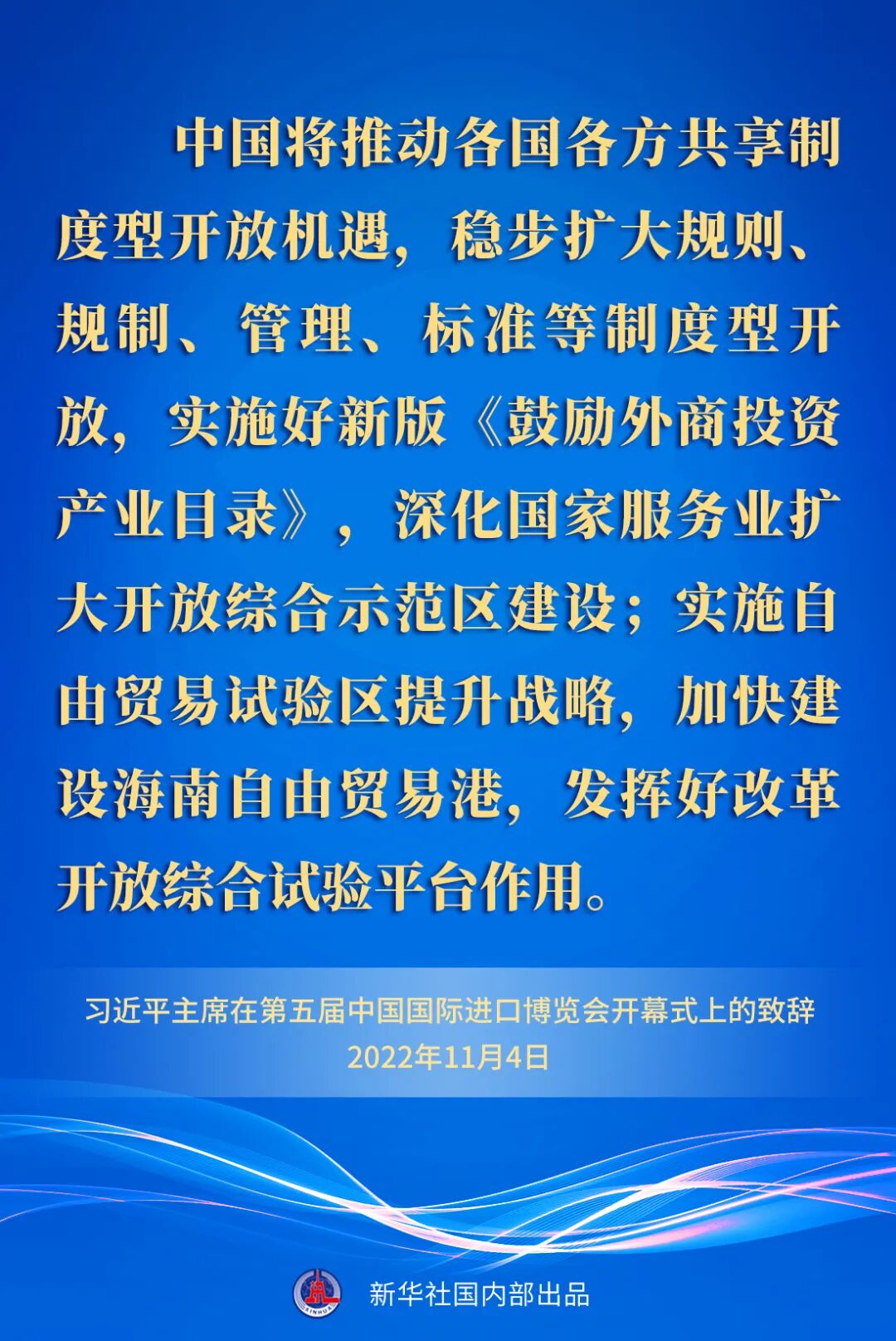 ——中国将推动各国各方共享制度型开放机遇,稳步扩大规则、规制、管理、标准等制度型开放,实施好新版《鼓励外商投资产业目录》,深化国家服务业扩大开放综合示范区建设;实施自由贸易试验区提升战略,加快建设海南自由贸易港,发挥好改革开放综合试验平台作用。