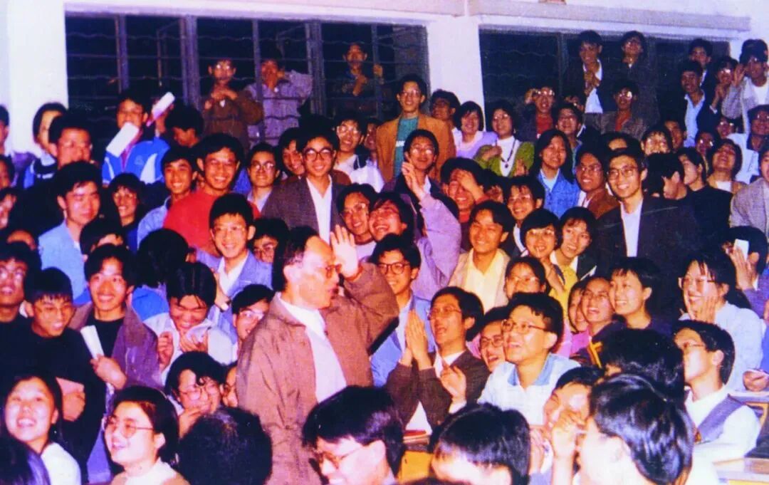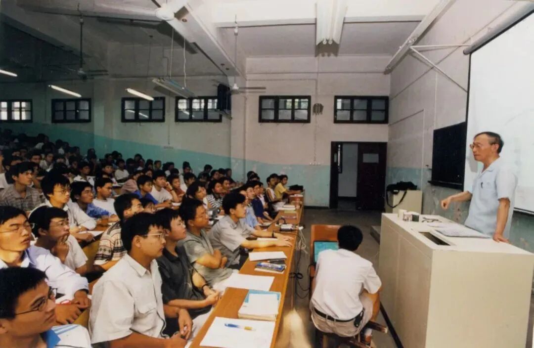 图为杨叔子给本科生上课。“背是形式,最重要的是在潜移默化中让学生浮躁的心宁静下来,让人的精神升华起来。”杨叔子是华中科技大学人文素质讲堂的倡导和推行者。1993年之后,在他出任华中理工大学校长的4年多时间里,他大力推行大学生人文素质教育,在这所理工院校掀起声势浩大的“人文风暴”,其影响力波及全国高校。杨叔子在高校中倡导并率先开展文化素质教育,使华中理工大学(现华中科技大学)成为中国高校文化素质教育的旗帜。图为1995年,杨叔子与学生在文化素质教育讲座后交流。每晚教学楼阶梯教室挤满了学生,人文素质讲堂成为一代华科人的记忆,成为时代的风景线。不少外校学生也从三镇各处慕名而来。永远不够坐的260多个阶梯座位,即便是江城炎夏时节,悬挂在空中的也只有5只老式吊扇;有时同一时间有几个人文讲座,也只能让那些著名的学者们屈就更小的教室。直到现在,华中科技大学给每一个学子都深刻地烙上“人文”痕迹——所有学生,每年考一次中国语文,不及格不发学位证;理工科学生每年必须拿两个人文学科学分,否则不能毕业;“中国语文”课程作为理工科学生的必修课,不及格不发毕业证。“没有科学的人文是残缺的,没有人文的科学也是残缺的。”他多次公开呼吁,取消中学文理分科,改革中小学课程体系,开展素质教育。“文理分科培养出的是1/4人,甚至是1/8人。”在许多公开场合,杨叔子都毫不留情地直陈其弊,“分科太细,甚至学工的不懂理,更不懂文,学机械的不懂电气,学制造的不懂汽车,如何能有交融和创新?”杨叔子院士对人文学科的倡导,也在学生们心中留下了深刻的烙印。