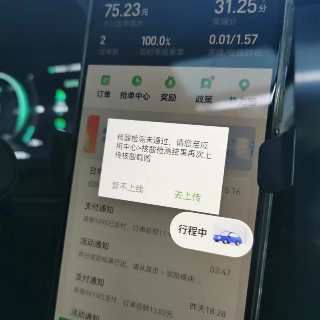 某网约车平台上,陆师傅的核酸信息已“过期”,无法上线。