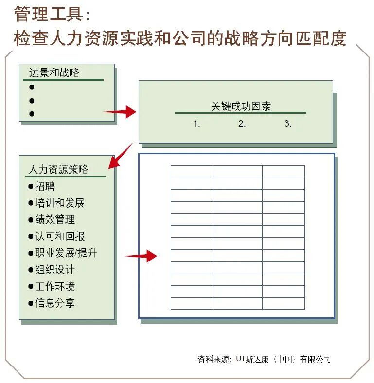 基本做法是:首先列出公司的远景和战略,然后讨论实现这些远景和战略的三大关键要素,对应这三个关键要素,人力资源部门再制订出相应的人力资源策略、措施和目标。