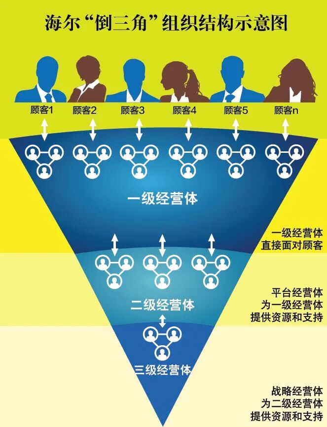 即使都是“倒三角”组织,不同企业仍然有不同的做法。首先,让我们来认识一下海尔的“倒三角”。