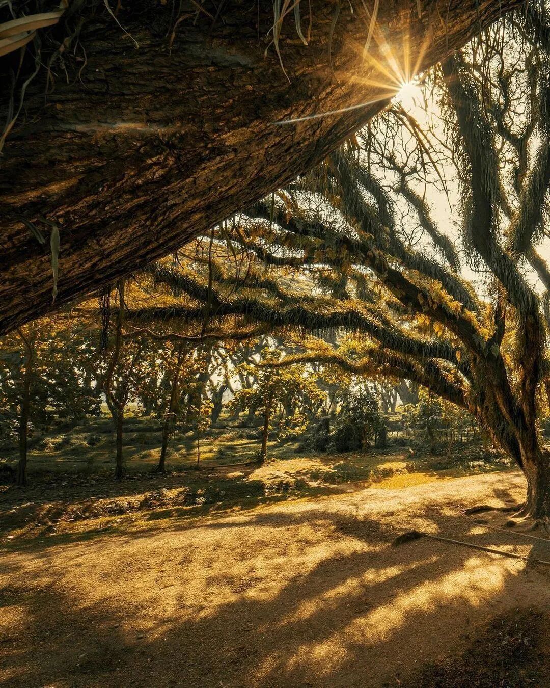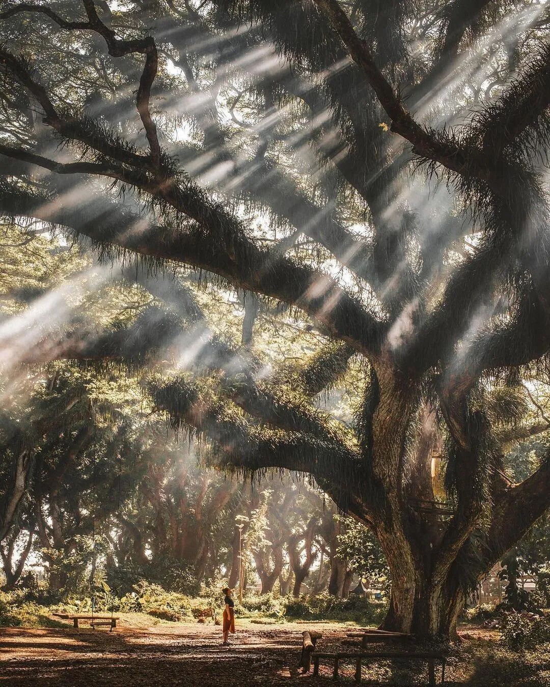阳光穿过树枝,谜一般的景象。