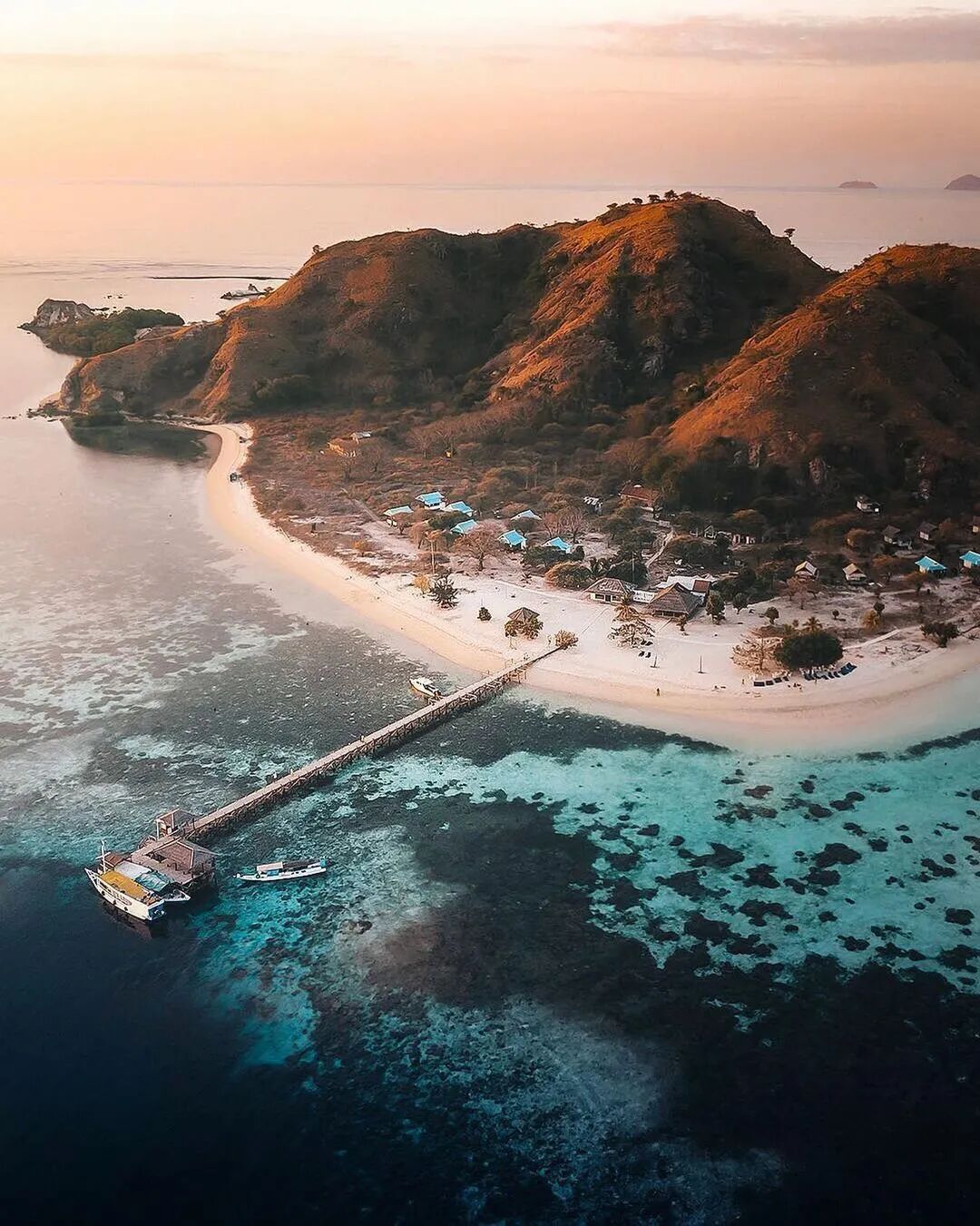 旱季的帕达尔岛像一个金色的臂弯,