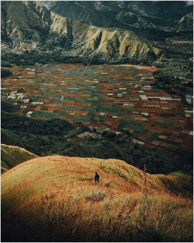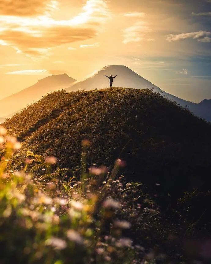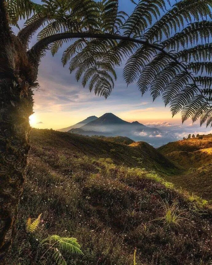 中爪哇的迪恩高原(Dieng Plateau),是一个沼泽高原,“Dieng”的字义是“神仙之山”,这里气候寒凉,仙气飘飘,还可在秋草漫野之中远眺普劳火山(Mount Prau),收获一抹“高原之秋”。