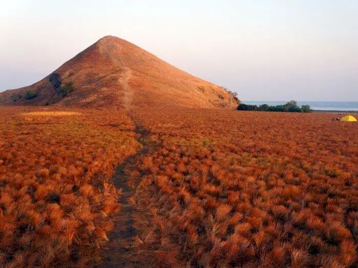 纳闽巴霍(Labuan Bajo)不仅海滩很美,山上的景色也很美!西尔维亚山(Sylvia Hill),就是一座有着热带稀树草原的高山。它的交通也很方便,距离港口仅 4.6 公里,约 11 分钟车程。由于地处高地,西尔维亚山也是欣赏日出和日落的最佳地点。