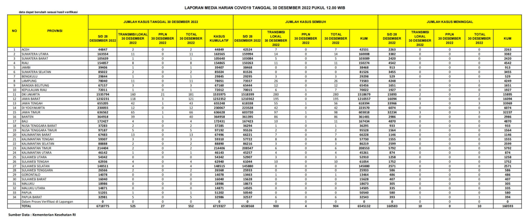 2022年12月30日印尼疫情数据