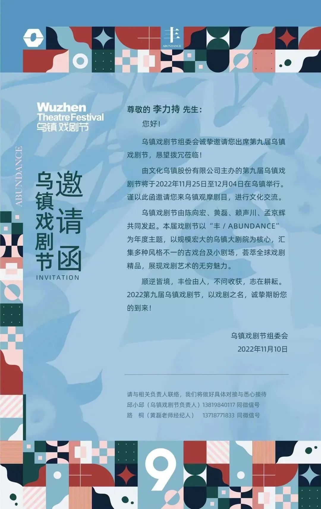 很快,一份新鲜出炉的邀请函就送到了,组委会邀请李力持以特别嘉宾的身份参加戏剧节。
