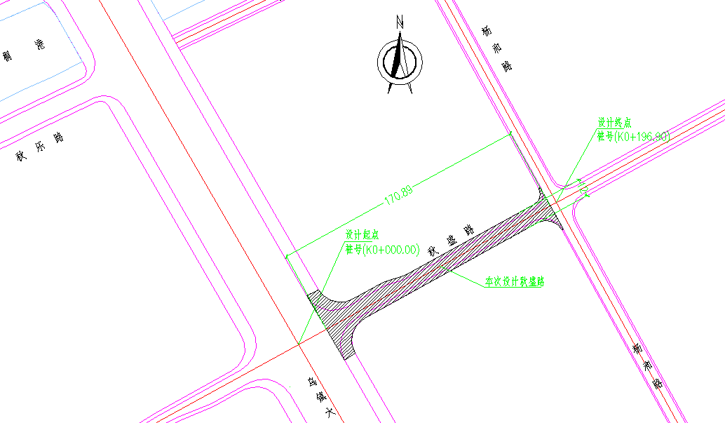 秋盛路(乌镇大道至杨和路)工程,新建道路长约158.56米,路宽12米,面积约1902.72平方米。施工内容包括道路、雨污水管道、强弱电土建、人行道等,目前正在进行路基开挖工作,预计于2023年1月完工。道路完工后,将进一步完善健全庆北区块城市路网框架体系、缓解局部交通压力。
