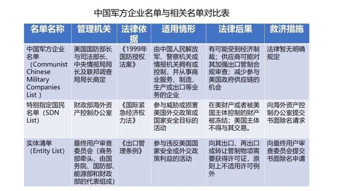 最后,建议被列入名单的企业密切跟踪美国国防部、财政部海外资产控制办公室、商务部产业安全局等联邦政府部门的动向,如果后续被列入“SDN名单”“实体清单”或者被采取其他执法措施,再视实际情况考虑是否申请除名复议、提起行政诉讼或者采取其他救济措施。